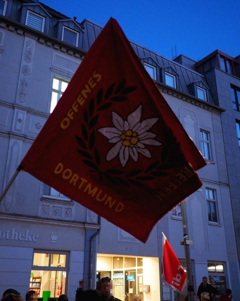 Es war bemerkenswert wie weing man von der Dorstfelder Naziszene an diesem Tag mitkam. Einzelne Nazis beobachteten gelegentlich aus der ferne den Protest. Es ist deshalb schwer zu sagen viele Nazis vor Ort waren, aber wahrscheinlich im niedrigeren zweistelligen Bereich.